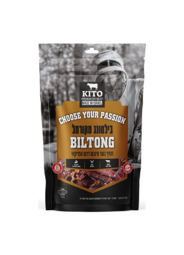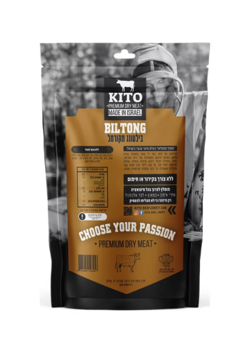 קיטו בילטונג מקורמל הוא גרסה ייחודית וטעימה של החטיף הבשרי האהוב, שילוב מדויק בין בשר איכותי לעדינות מתיקה מעושנת. הניסיון המוקפד של קיטו ביצירת תיבול, ייבוש ועישון בא לידי ביטוי כל כך טוב, כל פרוסה מספרת סיפור של איכות, מרקם וטעם.